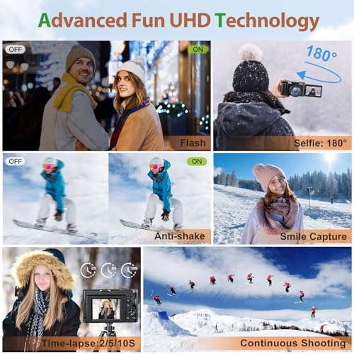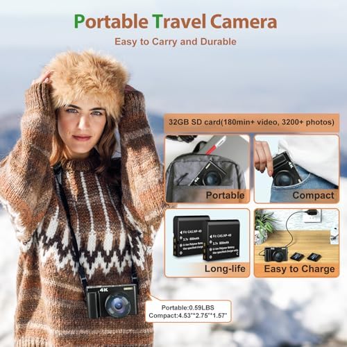 🎁PERFECT GIFT FOR SHARING FUN: The fashion digital camera for beginners and teens is full-featured and easy to operate! The 4K photo camera makes everyone use it easily in home life, social software, travel, or photography! Also, This small camera is the ideal gift for lovers, friends, children, or parents for Valentine’s Day, Thanksgiving, Christmas, or a birthday! Share your fun with this point-and-shoot camera.