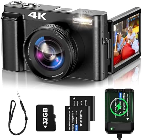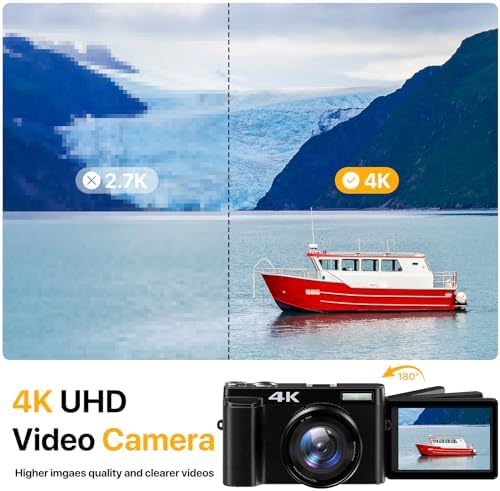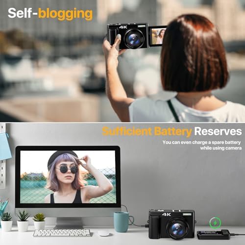 【4K Digital Camera & Self-blogging 】:This digital camera can be used for making videos for YouTube features with 4K video resolution. This 4k camera can capture 48MP image resolution & supports 16X digital zoom, helping you capture and record the most exciting memorable moments with high-quality images or videos, perfect for indoors outdoors. This 4k vlogging camera has a 180 degree rotatable 3” LCD screen, you can see what you are recording or the picture framing while doing self blogging.