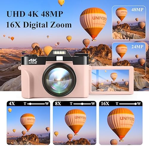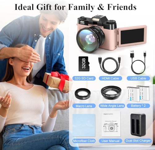 【48MP HD Autofocus & 4K Video Anti-shake】: 48MP 4K Digital camera for photography autofocus supports 16X zoom to capture photos clearer. No matter the 1” close-up or distant view, you can easily shoot HD texture blockbusters with the vlogging camera! 4K video camera has an anti-shake and pause function to meet your HD needs for shooting sports, time-lapse, and slow-motion, saving video editing time. Of all digital cameras for beginners!