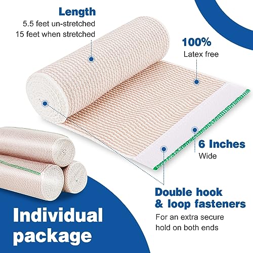 🎁【Individually packed】The individually packaged 5 packs compression elastic bandage is a perfect complement to the first aid kit and home wound care products. Our bandages are a standard length of 5 feet, and the stretched length is 15 feet for maximum coverage. And is easy to store and carry.