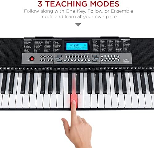 3 TEACHING MODES: One-Key, Follow, and Ensemble modes provide lessons for novice players. An LCD screen, light-up keys, recorder with playback, and piano note stickers make the learning process fun