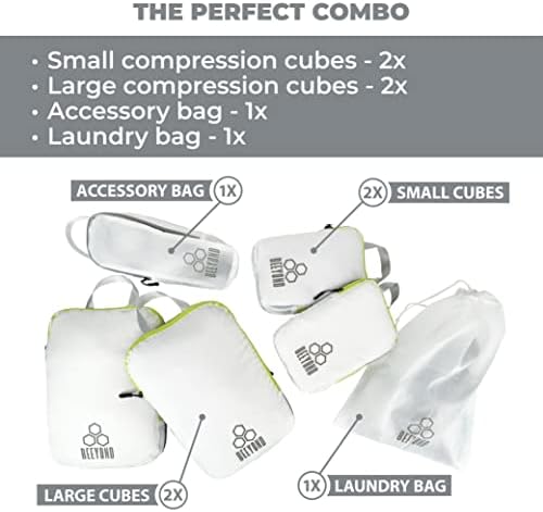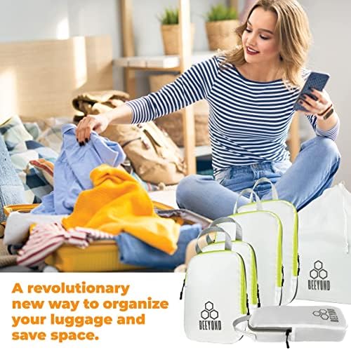 Compress clothes by 50% Save space in your bag or backpack Organize your luggage More room – pack more clothes Your clothes stay protected from getting dirty or damaged by other items in your bag The material is translucent (partial see-through) so that you can easily find things you’ve packed The set is designed to fit carry-on
