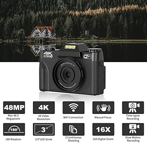 📸【Camera for Photoggraphy and Video】The digital camera featuring 4K video and 48MP photo resolution, the vlogging camera supports 16X Digital Zoom, Video Pause, Recording while Charging, Loop Recording, Continuous Shooting, Silent Recording, Self-Timer. with the latest upgraded chip to ensure the camcorder images more high-definition, more realistic. It’s the best gift for friends and family.