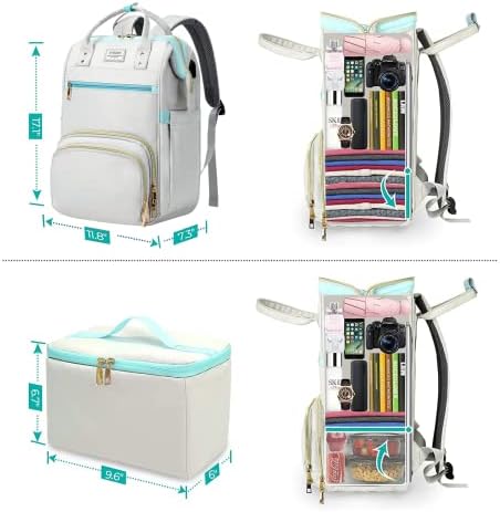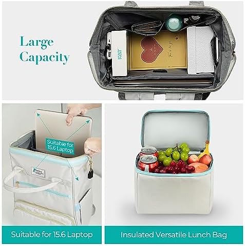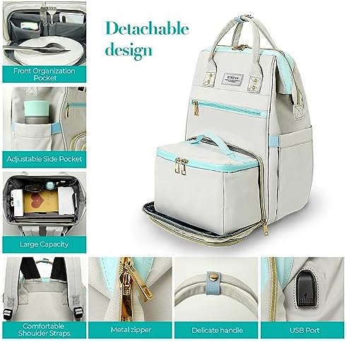 2-in-1 design backpack for women can be used as a lunch bag or a laptop backpack. When you store food or fruit on the lunch bag, main compartment area will be reduced to provide more space for food container compartment. The inner folding board has a built-in support to prevent food from being crushed by heavy objects. When you don’t need to carry food, the insulated layer can be folded so that you can carry more items in main pocket. The detachable carry lunch bag is also a nice touch.