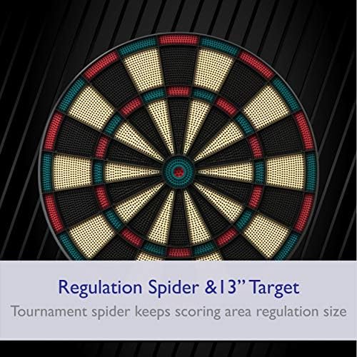 Has a 13″ target face, and a missed darts catch ring
