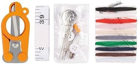 TRAVEL SEWING SET: TSA-compliant sewing set featuring folding travel scissors with durable, stainless steel blades, 10 colored threads 39″ measuring tape, 3 hand needles, 2 safety pins, 4 straight pins, 4 buttons, and a needle threader