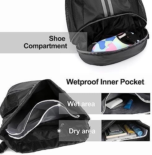 Dry/Wet Separation: Our gym bag is designed with multi-pocket. There have independent shoes compartment and wet proof inner pocket, which makes it convenient for gym-goers, swimmers, and anyone who needs to keep their gear separated and organized
