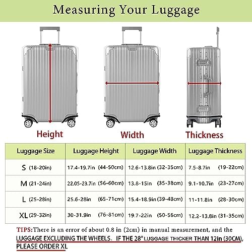 【SIZE AND COLOR 】 4 sizes available to fit almost any luggage. S (fit 18-20inch luggage); M (fit 22-24 inch suitcase); L(fit 25-28 inch luggage); XL (fit 29-32 inch luggage). We have many kinds of design, you can choose the one you like. Please refer to the size picture and measure the size of your suitcase before buying.