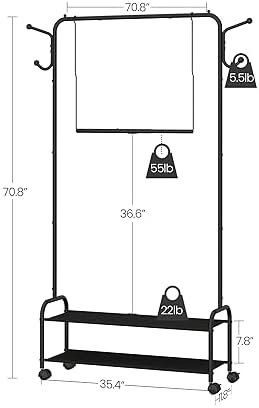 3-In-1 Design: This organizer combines a clothing rack, shoe rack, to offer a comprehensive solution for organizing your entryway or hallway area. The top rod provides ample space for storing your clothes, while the bottom 2-tier shelf is designed to keep your shoes organized. The detachable rod is quite convenient for you, because you could use it as another hanger for plants or anything else