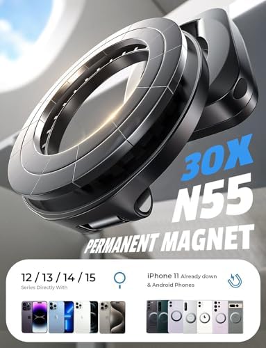 ✈️ for MagSafe Airplane Phone Holder:LISEN upgraded for MagSafe plane phone holder simplifies your life by automatically securing your phone in just 0.1 seconds as it nears the holder. Say goodbye to the tedious adjustments of traditional clamp iphone holder. This Travel gadgets offer unmatched stability, ensuring phones remain securely in place during flights for a seamless and reliable user experience