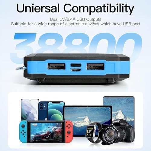 The power bank with dual LED flashlight is perfect for Emergency, Hurricane, Disaster, Survival, Outdoor, Camping, Hiking, Boating, Hunting, Night operation, Power Outages, Home, Everyday Carry…