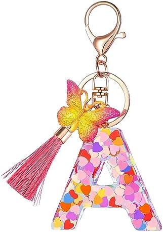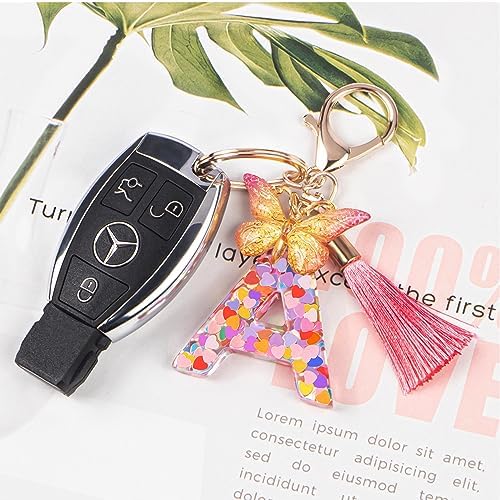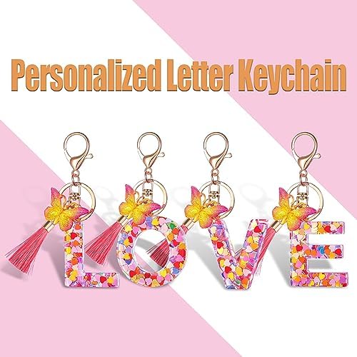 Colourful Pink Initial Letter Keychains for Women Girls