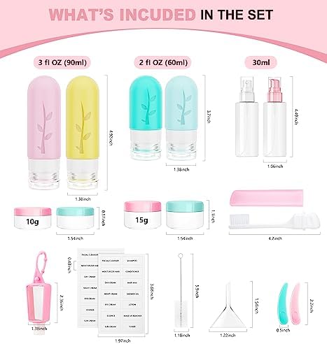 Includes 2 3oz and 2 2oz TSA compliant silicone bottles ideal for air travel and space saving