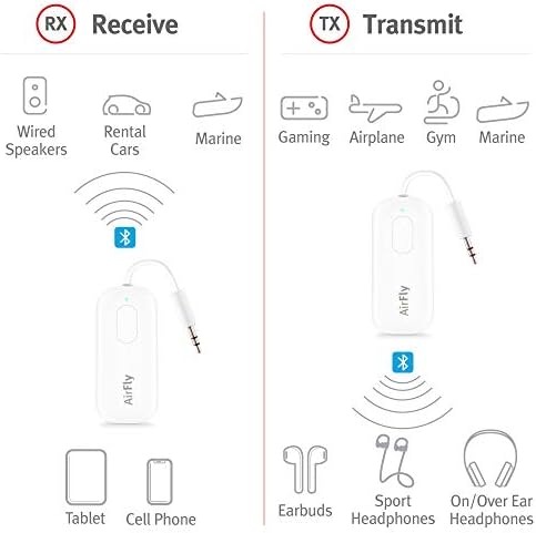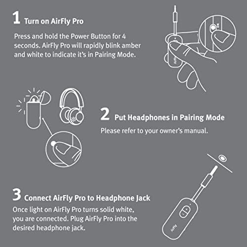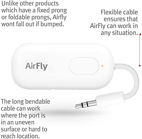 NOTES: AirPods must be INSIDE AirPod Case to enter pairing mode and we recommend turning off nearby bluetooth devices like your phone when pairing on planes. AirFly features industry leading Bluetooth with aptX Low Latency Codecs. If you are experiencing anything less than high quality audio, first check the audio source. Regarding latency, ensure your device supports Bluetooth 5.2