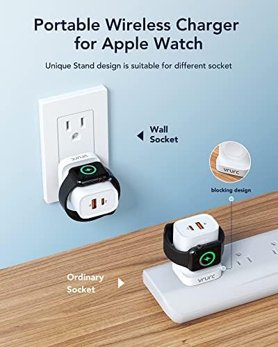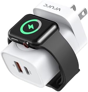 Mean Features For Apple Watch/Dual Ports Fast Charging/Foldable Plug/3-IN-1 Design Max Output USB C Port(20W), USB Port(18W), Apple Watch Wireless(2.5W) Compatible for Apple Watch/iPhone/Samsung Phones/Android/Tablets Weight 2.46 Oz Size 2.15* 1.69* 1.18 in